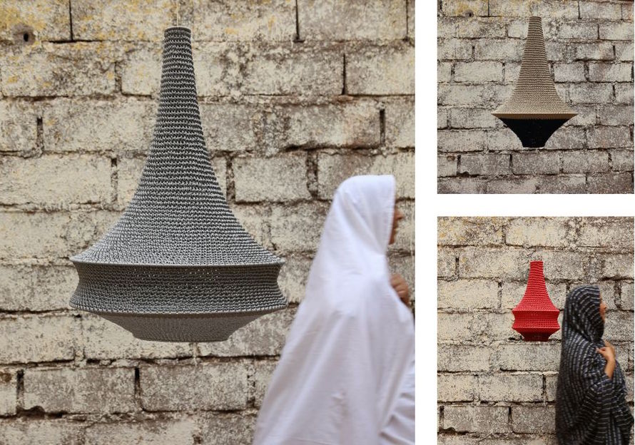 The shapes of the pendants are inspired by objects used daily in Moroccan life such as tanginess, baskets, and lanterns.